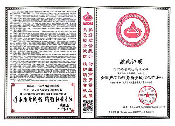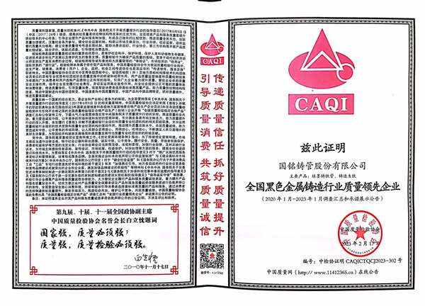在半個多世紀(jì)的崢嶸歲月中,國銘鑄管依托雄厚實(shí)力和專業(yè)技術(shù)品質(zhì),堅持“技術(shù)提升質(zhì)量,品質(zhì)鑄就品牌,創(chuàng)新推動發(fā)展”的企業(yè)宗旨,為客戶提供滿意的產(chǎn)品和服務(wù)